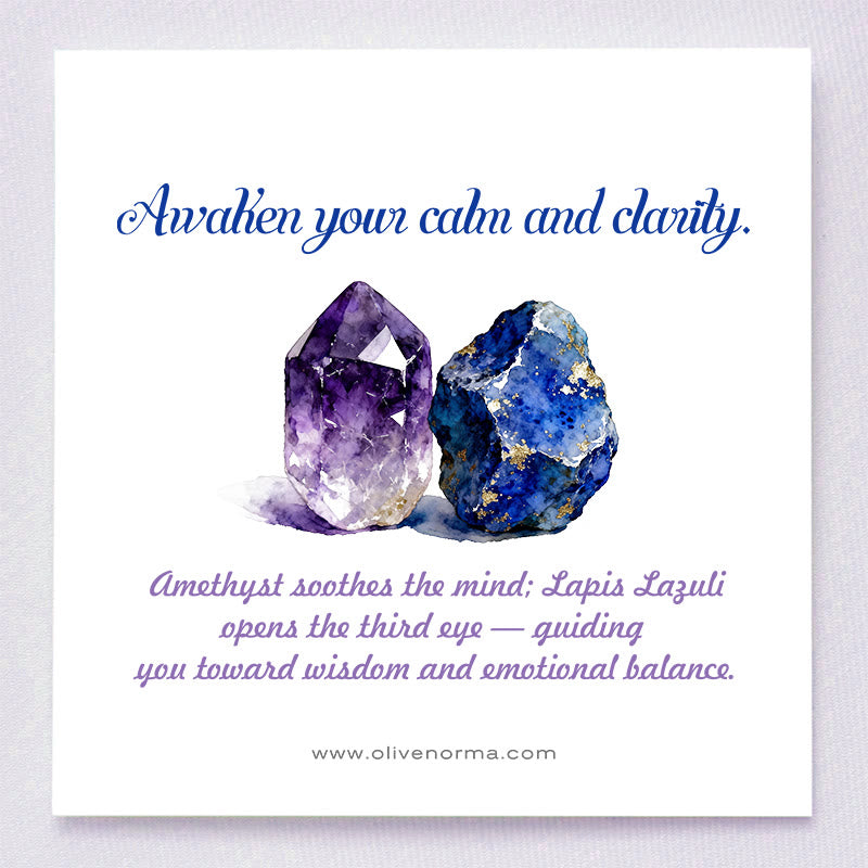 Amethyst soothes the mind, while Lapis Lazuli opens the third eye — guiding you toward wisdom and emotional balance.